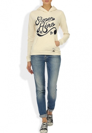 Удобное худи Sela выполнено из натурального хлопка бежевого цвета, махровая подкладка. Детали: прямой крой, капюшон окантован тесьмой, карман-кенгуру, вышивка декорирована бисером, металлическая подвеска.